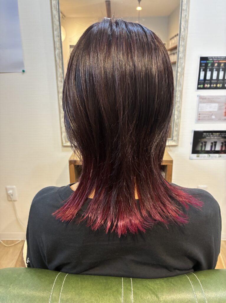前回入れたセクションカラーを活かして、今回は深みのあるワインレッド系ボルドーをプラス✨