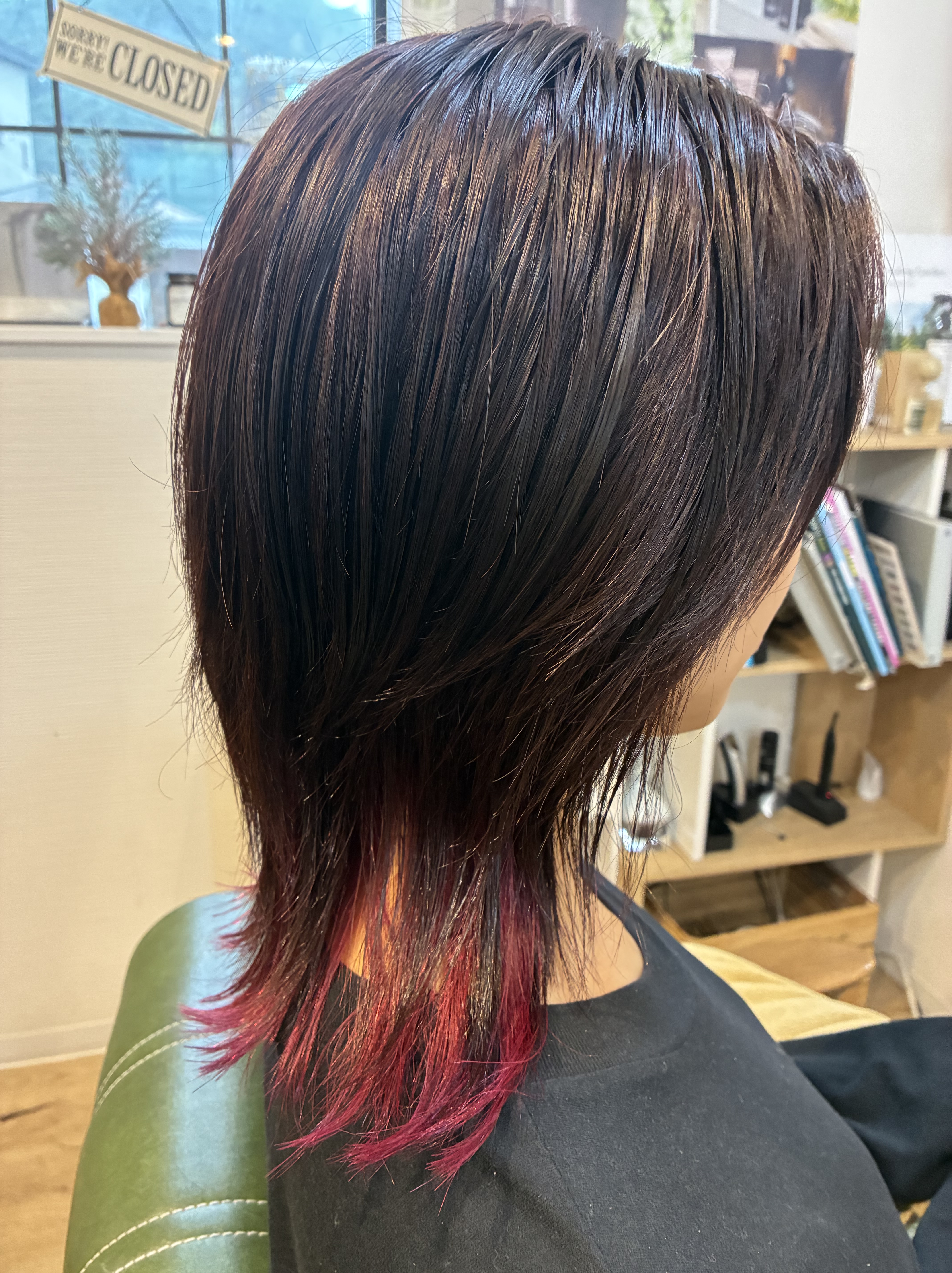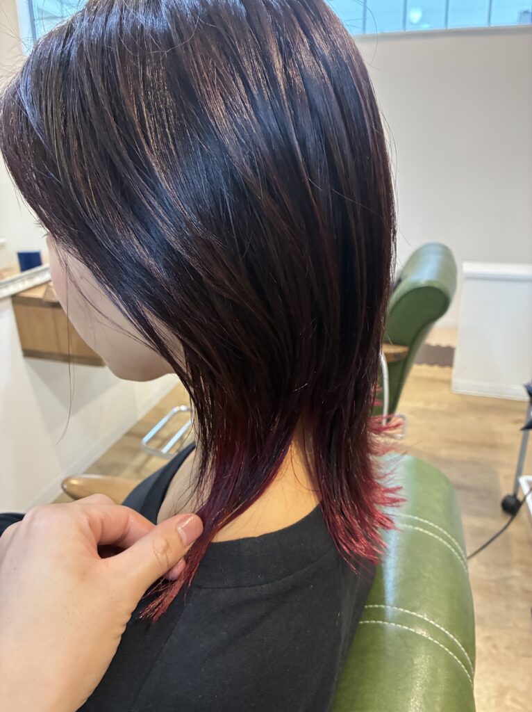 大人女性にも挑戦しやすい、“見え隠れする赤”が魅力のインナーカラーです🍷