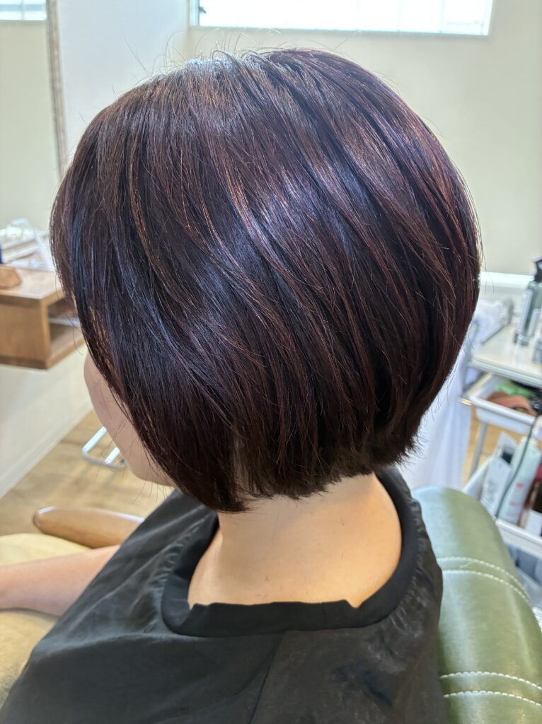 【大人女性の艶ショート】ワインベリーグロウカラーで叶える柔らか丸みボブ
